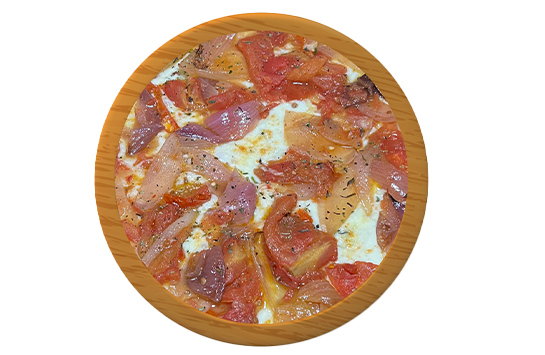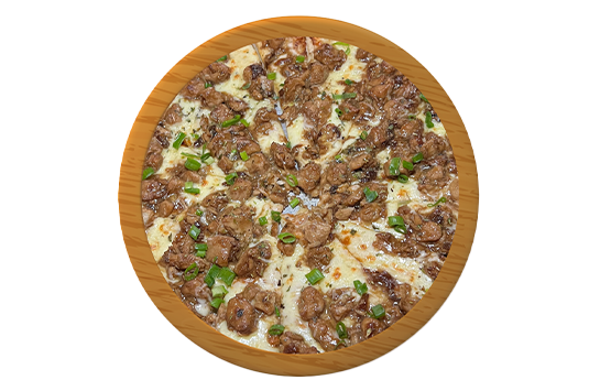Molho de tomate, mussarela, coração, especiarias, catupiry e cebolinha.